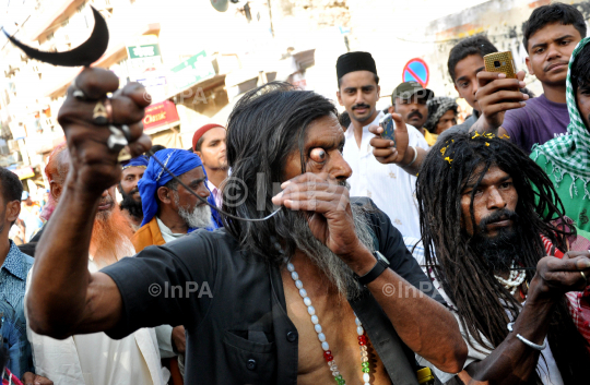 A Sufi Kalandar (wandering ascetic) performs an act of self torture during devotion at the annual Urs (death anniversary) of Sufi saint Khwaja Moinuddin Chishti in Ajmer, Rajasthan, India on May 21, 2012. The Urs is observed to mark the death anniversary of the saint, known for his philosophy on religious tolerance. Photo by Himanshu Sharma/Indian Photo Agency