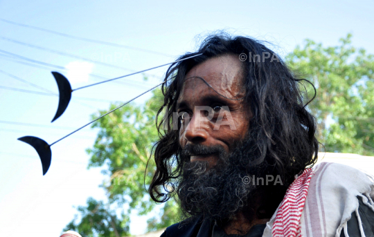 A Sufi Kalandar (wandering ascetic) performs an act of self torture during devotion at the annual Urs (death anniversary) of Sufi saint Khwaja Moinuddin Chishti in Ajmer, Rajasthan, India on May 21, 2012. The Urs is observed to mark the death anniversary of the saint, known for his philosophy on religious tolerance. Photo by Himanshu Sharma/Indian Photo Agency