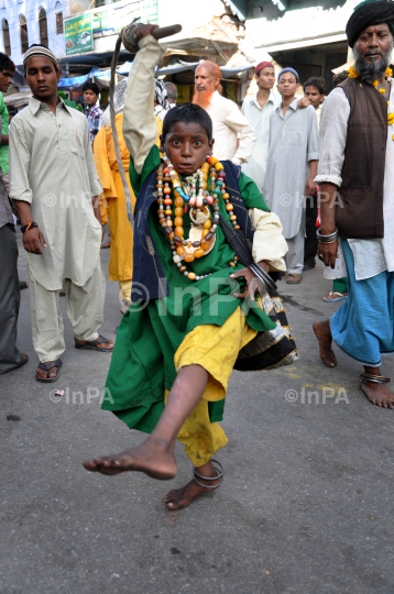A child Sufi Kalandar (wandering ascetic) performs an act of self torture during devotion at the annual Urs (death anniversary) of Sufi saint Khwaja Moinuddin Chishti in Ajmer, Rajasthan, India on May 21, 2012. The Urs is observed to mark the death anniversary of the saint, known for his philosophy on religious tolerance. Photo by Himanshu Sharma/Indian Photo Agency