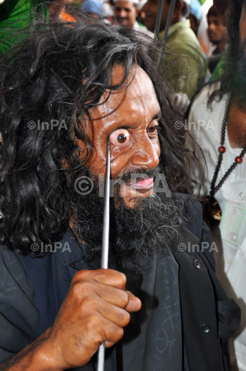 A Sufi Kalandar (wandering ascetic) performs an act of self torture during devotion at the annual Urs (death anniversary) of Sufi saint Khwaja Moinuddin Chishti in Ajmer, Rajasthan, India on May 21, 2012. The Urs is observed to mark the death anniversary of the saint, known for his philosophy on religious tolerance. Photo by Himanshu Sharma/Indian Photo Agency