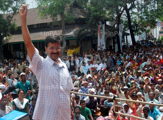 RTI activist and Team Anna core committee member Arvind Kejeriwal delivering speaks during a public meeting at Lakhidhar Borah khetra against the construction of big dams in Guwahati,Assam on Monday 28th may 2012. Photo by Dasarath Deka/Indian Photo Agency