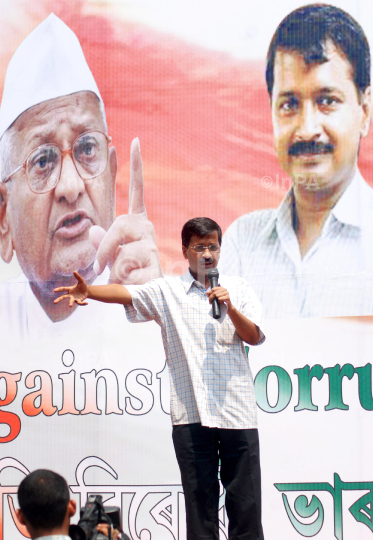 RTI activist and Team Anna core committee member Arvind Kejeriwal delivering speaks during a public meeting at Lakhidhar Borah khetra against the construction of big dams in Guwahati,Assam on Monday 28th may 2012. Photo by Dasarath Deka/Indian Photo Agency