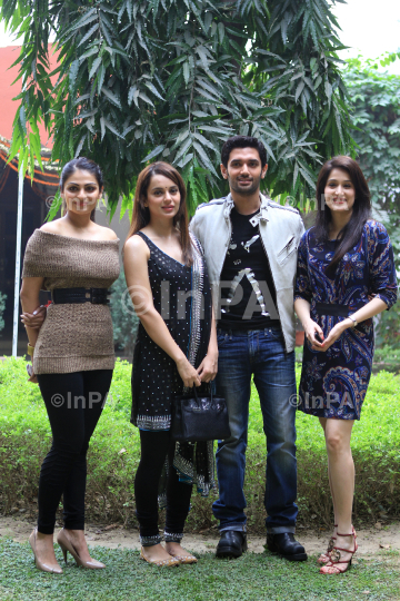 Actor Chirag Paswan, son of Rajya Sabha MP Ram Vilas Paswan with actress Kangna Ranaut, Sagarika Ghatge, Neeru Bajwa during a press conference of their film "Mile Na Mile Hum" in New Delhi on 01/11/2011. Photo Credit: Indian Photo Agency
