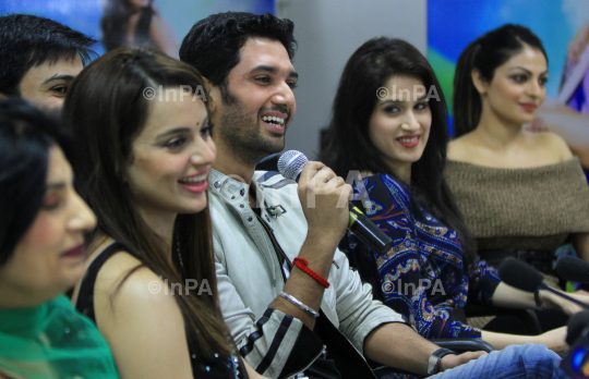 Actor Chirag Paswan, son of Rajya Sabha MP Ram Vilas Paswan with actress Kangna Ranaut, Sagarika Ghatge, Neeru Bajwa during a press conference of their film "Mile Na Mile Hum" in New Delhi on 01/11/2011. Photo Credit: Indian Photo Agency