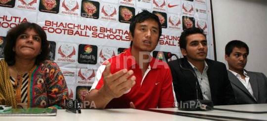 Former Indian national football team captain Baichung Bhutia launches his "Bhaichung Bhutia Football School" at press club in Mumbai on 21/11/2011. Photo by Sachin Halde/Indian Photo Agency