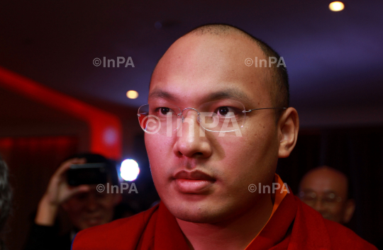 17th Gyalwang Karmapa Ogyen Trinley Dorje during a session of the Global Buddhist Congregation to commemorate the 2,600th year of Sambodhiprapti, or the enlightenment of Buddha, in New Delhi, India, Monday, Nov. 28, 2011. Photo Credit: Indian Photo Agency