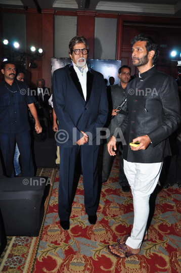 Bollywood actors Amitabh Bachchan and Milind Soman during the launch of The Big Indian Picture, an online magazine on cinema in Mumbai, India on September 24, 2012. Photo Credit: Indian Photo Agency