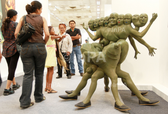 People ladmire a sculptors at United Art Fair (UAF), 2012, India's biggest art fair, at Pragati Maidan in New Delhi on September 29, 2012. Photo Credit: Indian Photo Agency