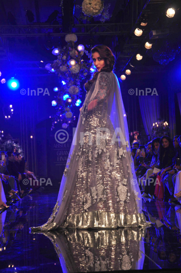 Bollywood actress Kareena Kapoor walks the ramp showcasing designer Manish Malhotra's "Gloss" collection during the grand finale of Lakme Fashion Week Winter Festive 2014 in Mumbai on Sunday, 24 August 2014. Photo by Indian Photo Agency (InPA)