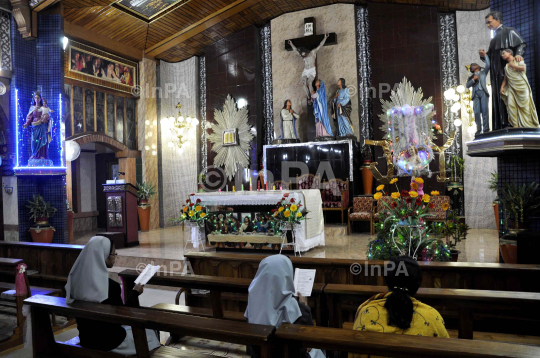 Devotees pray at a church during Christmas day Celebration in Agartala, Tripura, India, Wednesday, December, 25, 2013. Christmas Day is observed as a national holiday in India. Photo by Abhishek Debbarma/Indian Photo Agency (InPA)