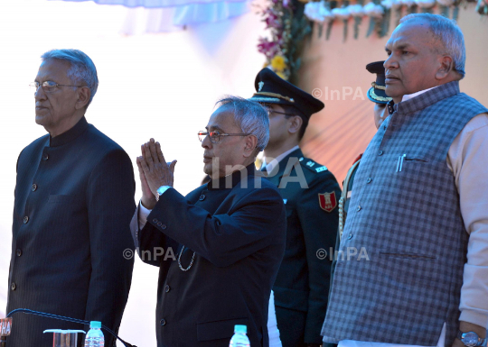 President of India, Pranab Mukherjee, inaugurating the New Building Complex of Jagat Taran Girls Inter College & Unveiling of the statue of Late Shri Chintamani Ghosh at George Town in Allahabad, Uttar Pradesh, India on Dec 25, 2013. Photo Credit: Indian Photo Agency (InPA)