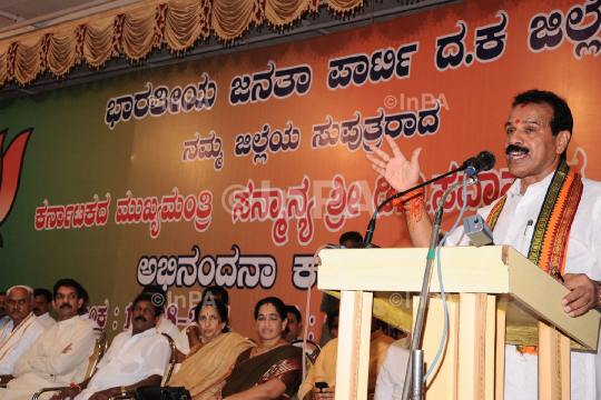 New Chief Minister of Karnataka D V Sadananda Gowda was accorded a rousing reception in city on Saturday morning on his first visit to the home district after assuming office in Mangalore on Saturday, 13/08/2011.Photo by RK Bhat/Indian Photo Agency