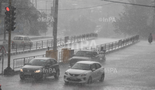 Bhopal: Heavy rain in the capital Bhopal this evening, the roads were full. During this, the youth enjoyed on the streets in the rain. Bhopal,Madhya Pradesh,India on June 16,2021. Photo By Indian Photo Agency (InPA).