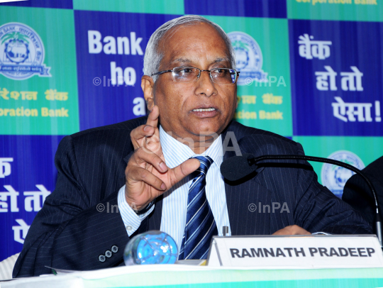 Ramnath Pradeep, cmd, Corporation Bank announcing Q1 results in Mumbai on July 28, 2011. Photo by Indian Photo Agnecy (InPA)