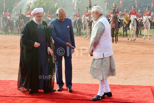 President of India, Ram Nath Kovind along with Prime minister Narendra Modi, during the Ceremonial Reception of Dr Hassan Rouhani, President of the Islamic Republic of Iran at Rashtrapati Bhavan in New Delhi, India, on Feb 17, 2014. Photo Credit: Indian Photo Agency (InPA)