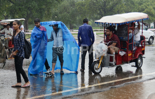 Rain: People enjoying weather during a heavy downpour in New Delhi, India on Aug., 18, 2013. Photo Credit: Indian Photo Agency (InPA)