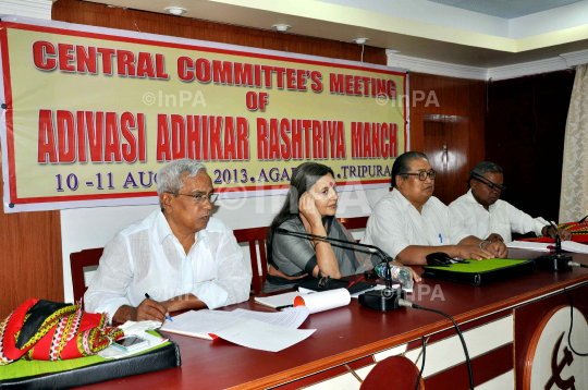 Polit Bureau Member of CPI(M) Central Committee Brinda Karat with other delegates of Kerala, Tamilnadu & West Bengal during two days Central Committee Meeting of Adivasi Adhikar Rashtriya Manch in Agartala, Tripura, India, on Saturday 10th August,2013. Photo by Abhishek Debbarma/Indian Photo Agency (InPA)