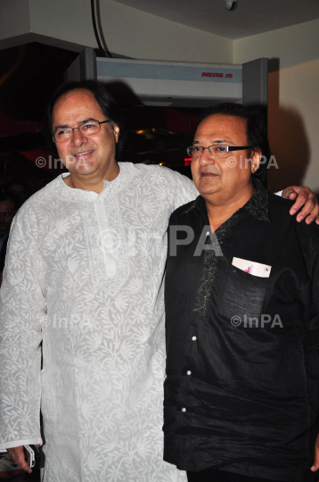 Bollywood actor Farooq Sheikh or Farooque Sheikh with Rakesh Bedi during a special screening of romantic comedy film "Chashme Baddoor" in Mumbai, India on April 03, 2013. Photo Credit: Indian Photo Agency (InPA)
