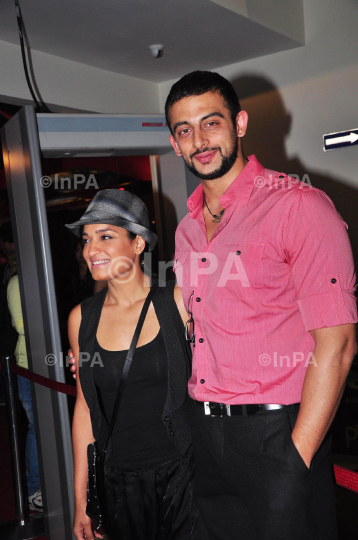 Bollywood actor Arunoday Singh with actress Sandhya Mridul during a special screening of romantic comedy film "Chashme Baddoor" in Mumbai, India on April 03, 2013. Photo Credit: Indian Photo Agency (InPA)