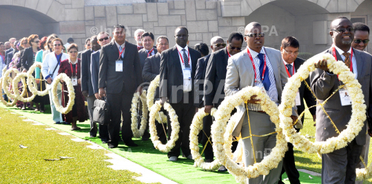 Chief Justices, Judges and legal luminaries from 63 countries of the world paying homage to Mahtama Gandhi at Rajghat in new Delhi on Thursday. They are India to participat in the 13thInternational Conference of Chief Justices of the World on article 51 Constitution of India.