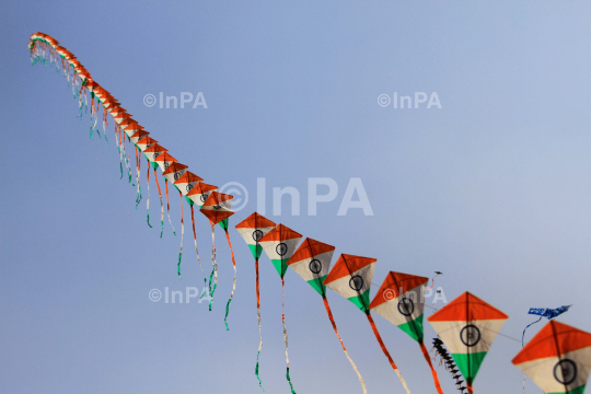 Kites fly during the Delhi International Kite Festival 2012 on the lawns of the India Gate in New Delhi, India on December 09, 2012. The event, organised by Delhi Tourism, is being held in the Indian capital on December 8 - 9. Photo Credit: Indian Photo Agency
