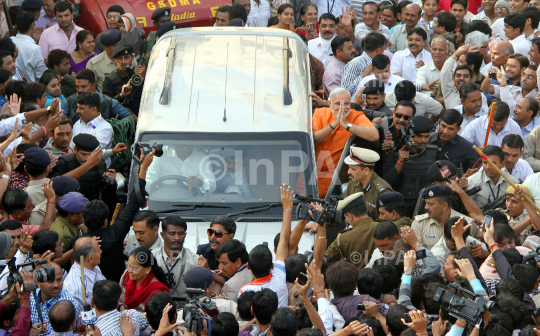 Gujarat Chief Minister Narendra Modi after casting his vote at a polling station in Ahmedabad, Gujrat, India on Monday, Dec 17, 2012. The counting of votes will be on December 20. Photo Credit: Indian Photo Agency