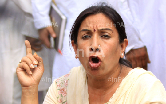 Delhi Mayor Rajni Abbi speaks to media during hunger strike of Anti-corruption and social activist Anna Hazare at Ramlila ground in New Delhi, India, on , Aug. 24, 2011. Photo Credit: Indian Photo Agency