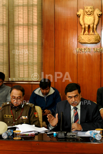 Home Secretary RK Singh with Delhi Police Commissioner Neeraj Kumar, addressing the media on the developments in the Delhi gang-rape case in New Delhi, India, Friday, Dec. 21, 2012. Photo Credit: Indian Photo Agency