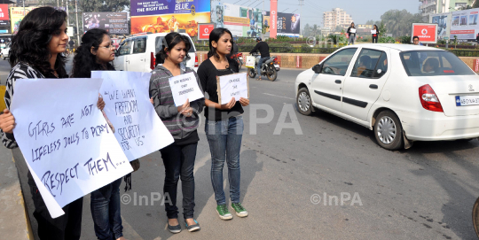 Youth by holding banner in the middle of the road, protesting against the gang rape to a paramedical student at Delhi recently in Guwahati on Saturday 22nd December 2012.Photo: DASARATH DEKA