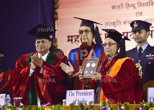 Indian President, Pranab Mukherjee releasing the Commemorative Coins at the Special Convocation of Banaras Hindu University to Mark the Concluding Ceremony of Birth Centenary of Mahamana Pandit Madan Mohan Malavia, at Varanasi, Uttar Pradesh on December 25, 2012.