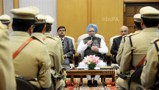 Indian Prime Minister, Dr Manmohan Singh interacting with the 64th Batch of IPS Probationers, in New Delhi on December 26, 2012. Photo Credit: Indian Photo Agency