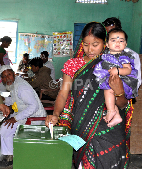 A lady casting their vote during 2nd phase of Panchayat Election at Village Bura Mayong at Marigaon District in Assam on Wednesday 6th February 2013.Photo: GITIKA TALUKDAR
