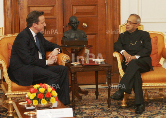 The Prime Minister of United Kingdom, Mr. David Cameron with the President, Shri Pranab Mukherjee at Rashtrapati Bhavan, in New Delhi on February 19, 2013