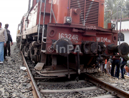A passenger train derailed near the Malanchapally railway gate at Malda town in West Bengal, India on Saturday Jan 05, 2012. Photo by Pankaj Ghosh/Indian Photo Agency