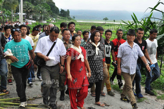 Panchayat election campaigning: Gorkhaland Territorial Administration (GTA) and Gorkha Janmukti Morcha (GJM) chief Bimal Gurung with the candidate and supporters on a rally during the election campaigning at Chamkdangi village near Siliguri in West Bengal, India on Saturday, July 06, 2013. Photo by Lila Shah/Indian Photo Agency (InPA)