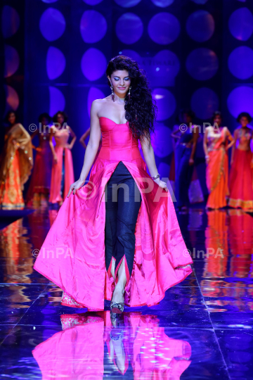 Bollywood actress Jacqueline Fernandez walks the ramp for designer Jyotsna Tiwari during the Aamby Valley India Bridal Fashion Week (AVIBFW) 2013, in New Delhi, India on July 24, 2013. Photo Credit: Indian Photo Agency (InPA)