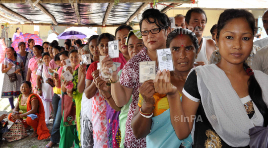 Indian people wait for their turn to cast their vote at a polling station during West Bengal Panchayat election at Dabgram in Jalpaiguri district near siliguri on Thursday, 25th July, 2013. Photo by Lila Sah/Indian Photo Agency (InPA)