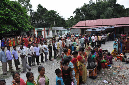 Indian people wait for their turn to cast their vote at a polling station during West Bengal Panchayat election at Dabgram in Jalpaiguri district near siliguri on Thursday, 25th July, 2013. Photo by Lila Sah/Indian Photo Agency (InPA)