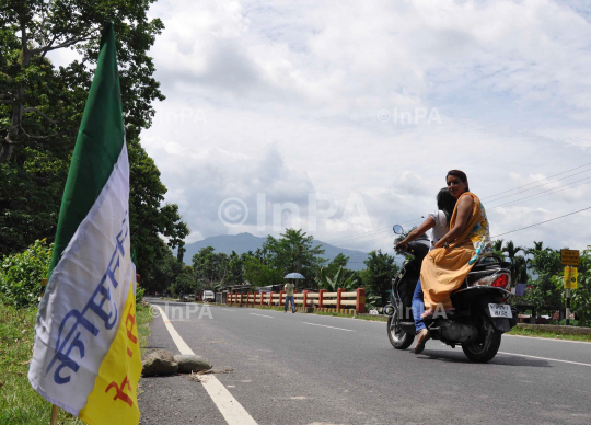 72-hour Darjeeling strike: Locals walk through the NH 55 during the 72 hours strike called by Gorkha Janmukti Morcha demamding separate state of Gorkhaland in Sukna near Siliguri, Darjeeling, West Bengal, India on Monday July 29, 2013. Photo Lila Sah/Indian Photo Agency (InPA)