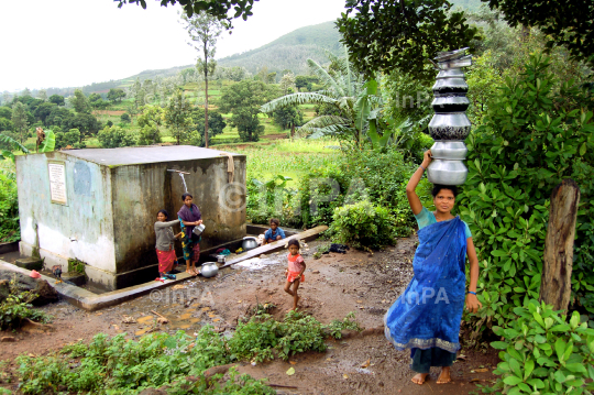 Water Problem: A Araku tribal woman with traditional water pots at basiki village at Araku valley in Andhra Pradesh, India, 20/07/2011. Photo by Narendra Reddi/ Indian Photo Agency