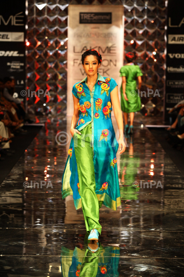 A model displays creation by fashion designer Priyadarshini Rao during the Lakme Fashion Week 2012 Winter/Festive, in Mumbai, India on August 4, 2012. Photo Credit: Indian Photo Agency