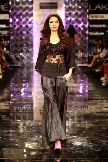 A model displays creation by fashion designer Priyadarshini Rao during the Lakme Fashion Week 2012 Winter/Festive, in Mumbai, India on August 4, 2012. Photo Credit: Indian Photo Agency