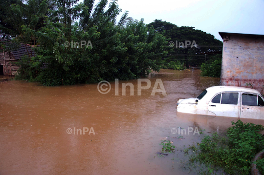Heavy rains have continued lashing the district, leaving many rivers, Netravati and Kumaradhara in particular, flowing in full spate, at Down Area of Bantwal Taluku on outskirts Mangalore City on Aug 07, 2012. The level is rising to levels considered dangerous. Normal life and transportation has been affected in many parts of the district. Photo by RK Bhat/Indian Photo Agency