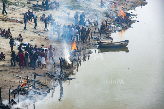 Daily Life: Cremation at baksar ghat on the banks of Ganga river at Baksar ghat in Unnao, Uttar Pradesh, India, on, Jan. 02, 2021. At cremation ground, the chief mourner has to obtain the sacred fire from the Dom caste, who reside by the shmashana and light funeral pyres (chita) for a fee. Photo by Shailendra Pandey/Indian Photo Agency (InPA)