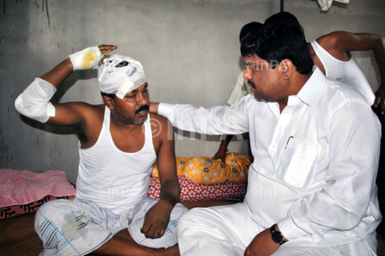 Rockybul Hussain, Forest and DRD minister of Assam meets with people injured in the violence at Ambagan in Nagaon on Thursday, August 30, 2012. Photo by Anuwar Hazarika/Indian Photo Agency