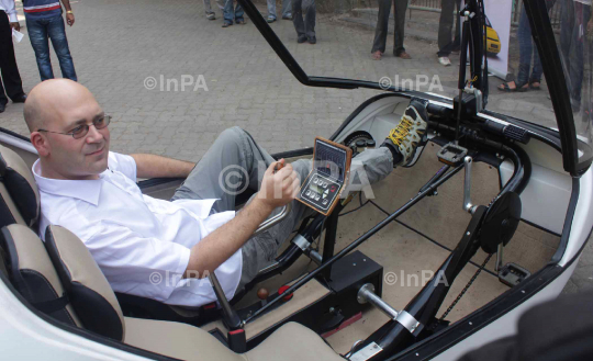 Green Car: Swiss made battery car at VT Station WAVE(World Advanced Vehicle Expedition) campaign in Mumbai on 02/12/2011. Photos by Sachin Halde/Indian Photo Agency