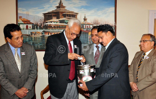 NN Vohra, Governor, launching the Armed Forces Flag Day Fund collection drive by contributing towards the Fund at a function held at Raj Bhavan, in Jammu, Jammu and Kashmir India, on Dec. 7, 2011. Photo by Amit Sharma/Indian Photo Agency