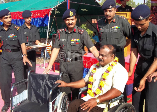 BRIG PRAKASH S NAIR COMMANDANT ARTILLARY CENTRE HONOURING THE DISABLED SOILDERS AT THE RALLY HELD AT ARTILLERY CENTRE GOLCONDA, HYDERABAD ON 08/12/2011. PHOTO CREDIT: INDN PHOTO AGENCY