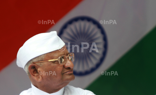 Indian anti-corruption activist Anna Hazare, during his day long fast, in New Delhi, India, Sunday, Dec. 11, 2011. Indian anti-corruption crusader Anna Hazare, whose campaign in August attracted massive public support, held a one-day fast December 11 demanding the government do more to crack down on crooked officials. Hazare returned to New Delhi for a one-day symbolic fast to protest against the government's draft of a new anti-corruption law, which he said was "toothless" legislation that exempted many key officials. Photo Credit: Indian Photo Agency