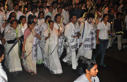 Mamta Banerjee, West Bengal Chief Minister leading a candlelight march on Monday night in memory of the Advance Medicare And Research Institute (AMRI) hospital following a deadly fire December 9 which killed 90 people, in Kolkata on December 12, 2011. Photo Credit: Indian Photo Agency